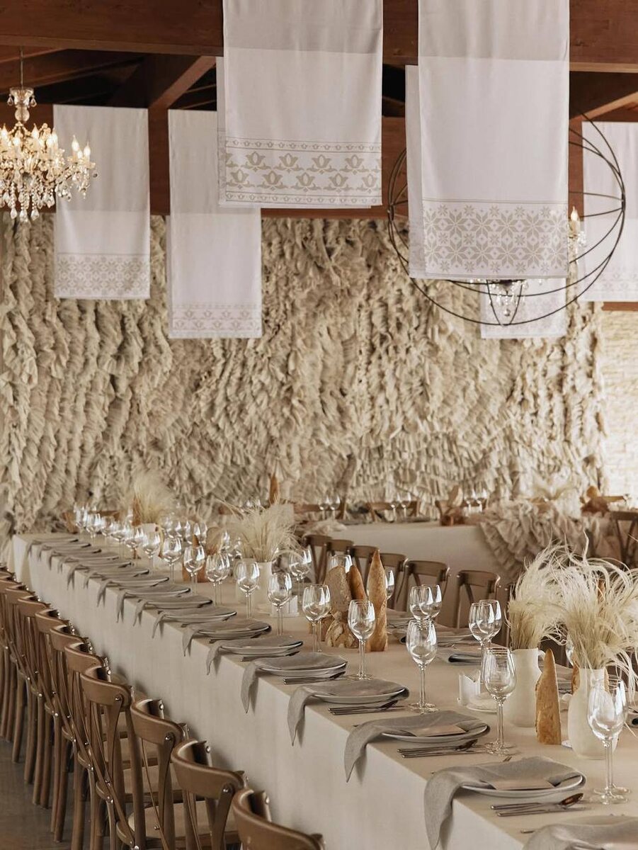 Вот совсем недавно увидела использование текстиля ручной работы в декоре свадьбы.