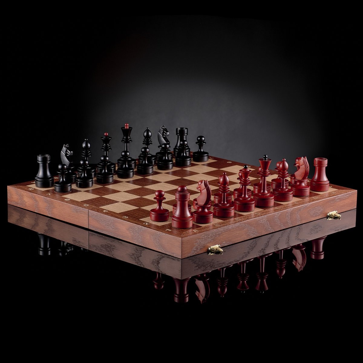 📺 Шахматный набор «Пражские мотивы» является представителем линейки шахмат «Ретро». Данный набор представляет репродукцию шахмат из СССР 60-70-х годов XX века. «Пражские мотивы» посвящены первому международному матчу шахматистов двух государств. Набор выделяется полной идентичностью конструкции и доски оригинальных шахмат. Дизайн фигур приближен к моделям «Стаунтон», но отличается более обтекаемыми и плавными очертаниями. Изюминка набора — фигуры оригинальной расцветки. Тёмные фигуры тонированы в черный цвет, а светлые — насыщенно красный. 🌳 При изготовлении набора «Пражские мотивы» мастера KADUN выбрали массив тонированного дуба, клён и африканское сапеле. Заказ можно осуществить на официальном сайте – kadun.ru.