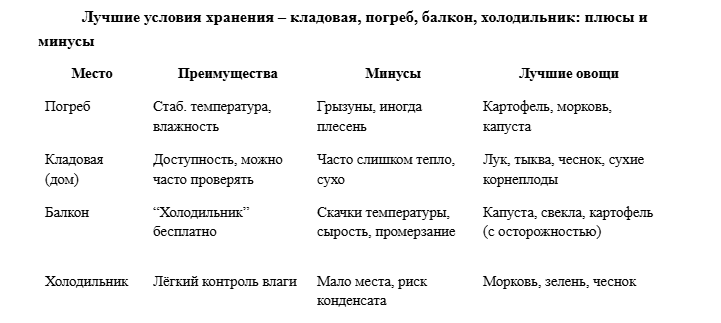 Лучшие условия хранения – кладовая, погреб, балкон, холодильник: плюсы и минусы