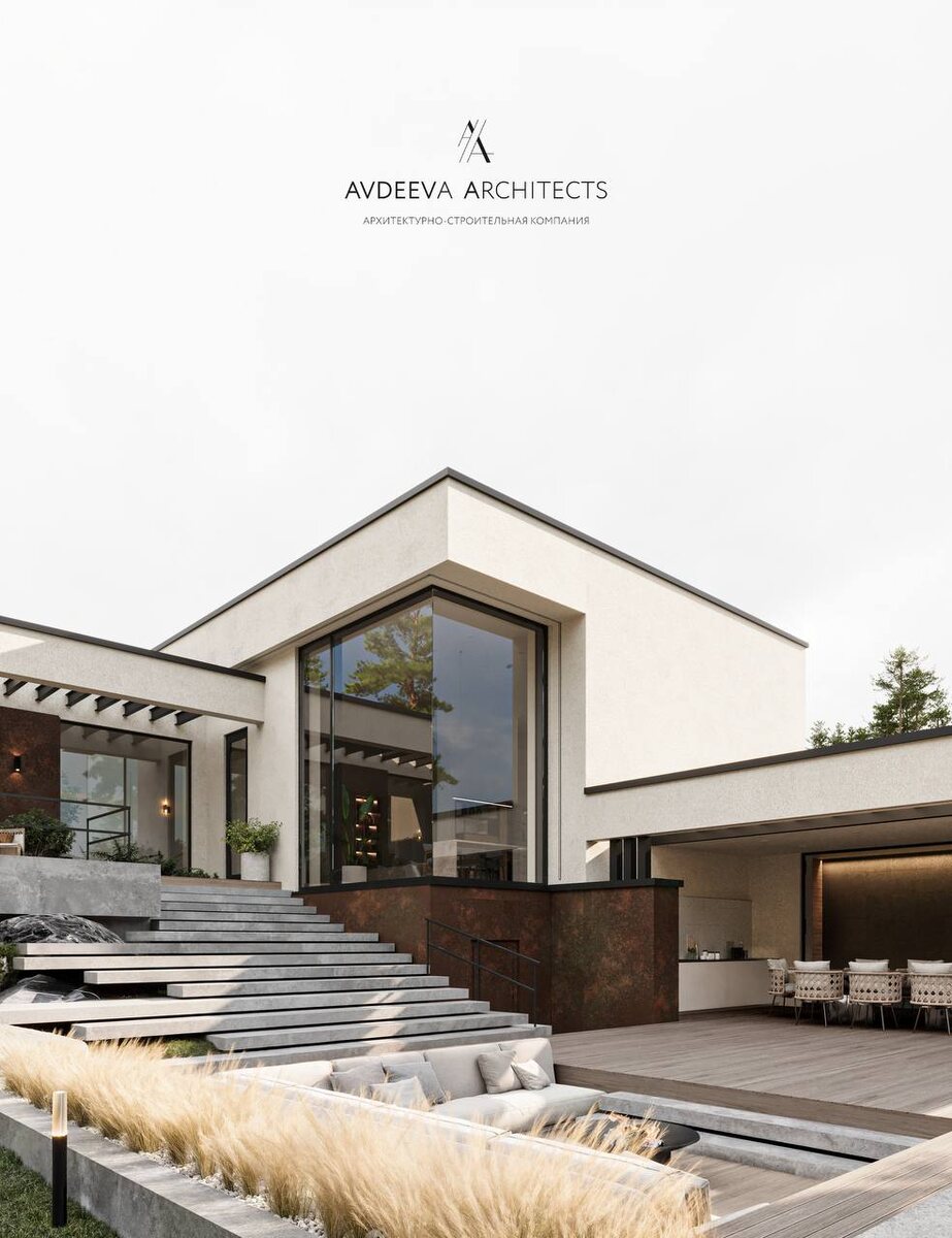 SIMPLE Лаконичность и контраст фактур. Воплощение сдержанной эстетики и гармонии с природой. Дом расположен в окружении векового соснового леса, органично вписывается в ландшафт, сохраняя при этом выразительную архитектурную индивидуальность. Тёплый оттенок кортеновской стали, её благородство вносит природную динамику, гладкая светлая штукатурка подчёркивает чистоту линий и визуальную лёгкость объёмов. Как вам наш новый проект SIMPLE? Ставьте реакции♥️