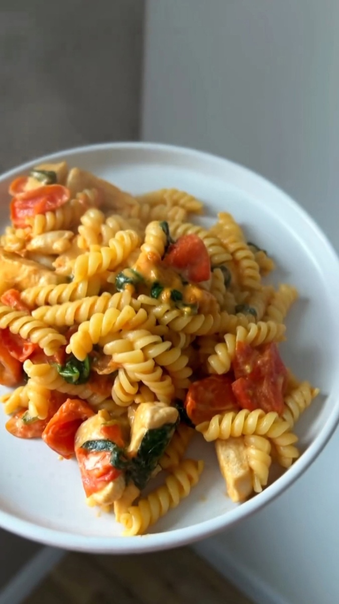 Когда хочется приготовить что-то вкусное и красивое, но времени в обрез — этот рецепт приходит на выручку. Макарошки с курицей, томатами черри и шпинатом — это про баланс: быстро, полезно, ярко и очень сочно. А фета и немного воды от пасты делают соус шелковистым и нежным — такой, будто вы заказали блюдо в кафе, только лучше. Блюдо эффектное само по себе: курочка, зелень шпината и яркие черри делают тарелку настоящей радостью для глаз. А на вкус — нежность курицы, сливочность феты и лёгкая кислинка томатов отлично сочетаются. Можно подавать просто так, с бокалом кефира или чашкой чая. А можно превратить в полноценный ужин — добавить тёплый тост, бокал белого вина или свежий салат. Этот рецепт особенно нравится занятым мамам — пока варятся макароны, вся остальная подготовка уже почти готова. За 20 минут — полноценное блюдо, красивое, сытное и полезное. Если понравилось — загляните в блог, впереди ещё много вдохновляющих идей: пицца за 10 минут, сырные блинчики, быстрые заготовки на неде