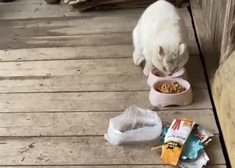Вот такой у нас есть боевой Мартын! Я явилась невольным спасателем Мартына. Кстати нашла съёмки двухмесячной давности, когда он пришёл покушать и выглядел достаточно упитанным, белым и пушистым. Старые раны затянулись, довольно таки нормальный котик и шерсть нормальная и чистая. Ну а потом что случилось, вы уже знаете. Сейчас Мартын залечивает боевые ра'ны на передержке. Елена, которая работает в приюте, следит за кошками, любезно согласилась забрать его к себе. Ну а я по дороге в приют, навещаю его. Днём сидит на воздухе, а вечером его переносят на тёплую закрытую веранду. Лена взяла его в руки, показать как он выглядит, ой недоволен. Но мордочка уже лучше, чем когда мы его подобрали. Привезла ему вкусненького корма поесть. Да кто же откажется от вкуснятины, тем более у Мартына аппетит хороший! Пора ехать, пошла попрощаться с Мартыном, а он такой недовольный, отвернулся от меня и по-моему обругал меня на своём кошачьем жаргоне. Чисто Китаец! Спустя несколько дней ещё раз заехала к Еле