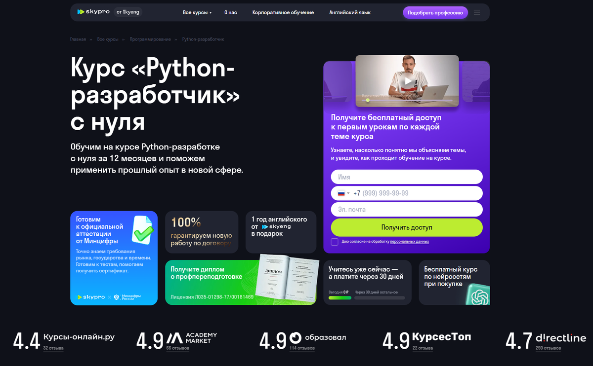 1.Курс Python-разработчик с нуля от Sky.Pro - 👉👉👉 Пocмотpeть пpoгpaммy кypca