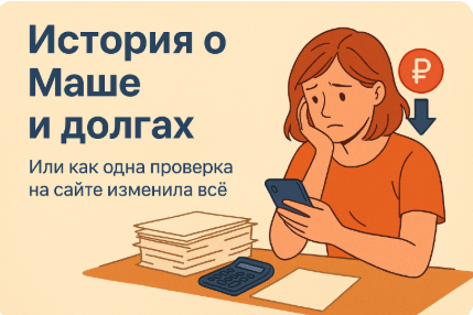 Маша работала в кафе. День на ногах, вечером домой без сил. Зарплата невелика, а долги копились — сначала кредит на телефон, потом лечение, потом микрозаймы. Вроде по чуть-чуть, а получилось больше 600 000 рублей. Платить уже нечем, начались просрочки. Потом банк продал долг коллекторам. Потом арестовали счёт. Половину зарплаты начали забирать приставы. И вот в какой-то момент Маша села на кухне, открыла телефон и вбила в поиске: