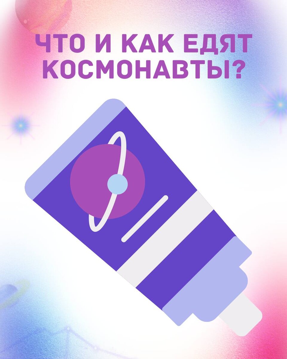 🟣 Что и как едят космонавты на орбите? ⠀ Космическая еда — это не просто рацион, а тщательно продуманный научный продукт. Она должна быть вкусной, питательной и безопасной для употребления в невесомости. ⠀ Виды еды на орбите: 🥫 Тубированная — пюре, борщ, мясо: высасывается через трубочку, как зубная паста 🥫 Консервы — гречка, плов, овощи: подогреваются в специальном устройстве и едятся ложкой с липучкой (чтобы не улетела!) 🥫 Сублимированная — сушёная еда: добавляют воду, размешивают и едят прямо из пакета ⠀ В условиях невесомости еда может улететь, если не закреплена! Поэтому: — блюда герметично упакованы — ложки и пакеты — с липучками — стол имеет магнитную и липкую поверхность ⠀ Космонавты из разных стран признаются, что именно российское меню на станции кажется самым уютным и сытным — всё это напоминает о доме и поддерживает моральный дух. ⠀ 💬 Один из иностранных астронавтов однажды сказал: “У русских еда не просто калории — это кусочек Земли.” ⠀ 🍽 У космонавтов 3 приёма пищи