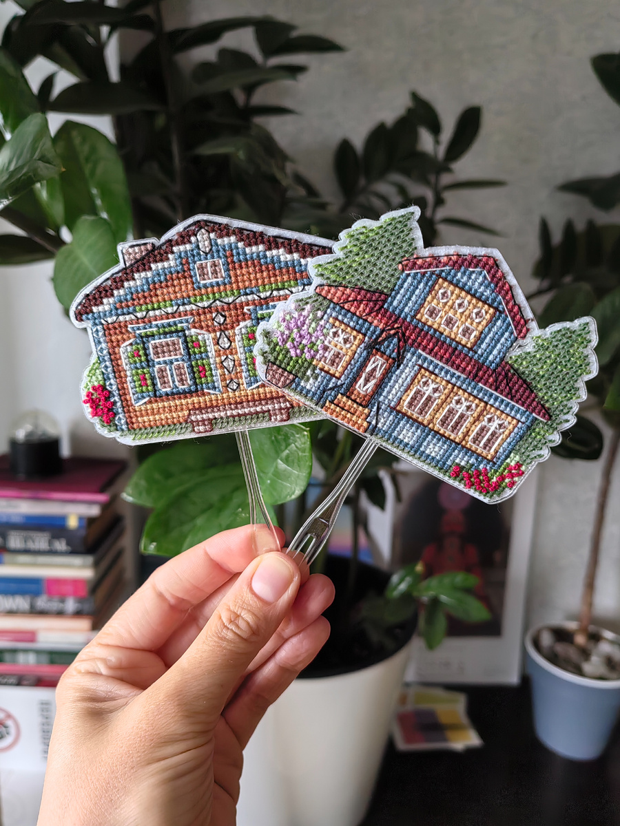 Приветствую, друзья! У меня готовы два домика из набора МП Студия. Домики, как домики! В чем же их волшебство? 🤔 Рассказываю. Есть такая вышивальная примета - вышивание дома влечёт за собой улучшение жилищных условий😎 Набор я купила отнюдь не для этого, однако о примете знаю и помню... А вдруг сработает 😜 Завершив первый домик, я мягко скажем, удивилась, когда мне поступило абсолютно неожиданное предложение из сферы недвижимости... Начала второй. С лавочкой и пионами😍 Я решила, что это пионы по бокам домика после фотосессии процесса на территории монастыря в Переславле-Залесском. Фото финиша были сделаны в лесу🌲🌲🌲 В этом домике снова накрутила фрузелки: И немного изменила белый бэк в сравнении с оригинальной версией. Мне не очень нравятся элементы черным бэком по центру, но переделывать не стала. Долго искала прототип домика. Думала, что в Переславле то явно найду, но увы🤷♀️ Наиболее похож вот этот: Поиски не прекращаю. Может быть вы мне поможете? 😉 Если увидите похожий до