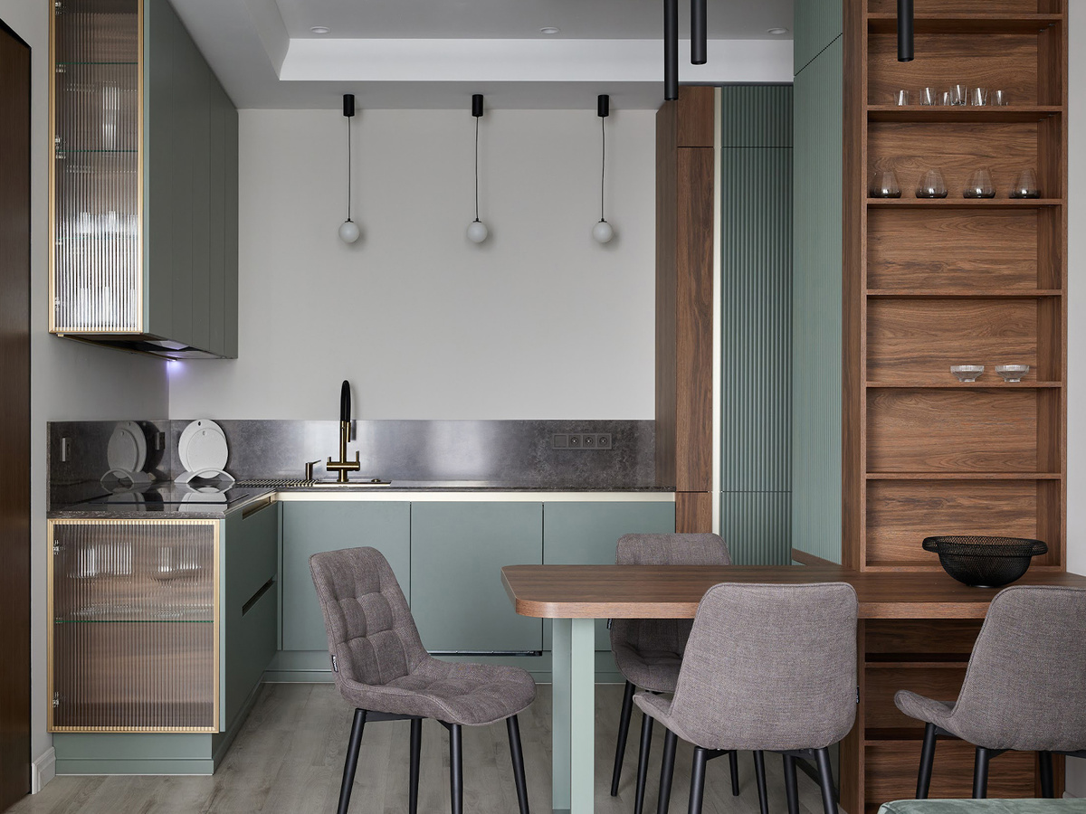 Как создать самую удобную, комфортную и эргономичную кухню? Ответ прост и очевиден: нужна кухня угловая, а не прямая. Как наиболее гармоничная она занимает особое место в сердцах дизайнеров и клиентов и подходит практически для любого помещения. Изучим особенности и преимущества угловой кухни вместе. Эффективный рабочий треугольник и максимально рациональное использование всего пространства. Мойка, плита и холодильник займут нужные позиции без особых усилий. Важно, чтобы расстояние между ними было в пределах 1–2,5 метра – так вам будет удобно перемещаться в рабочем пространстве при готовке. Угловая кухня устанавливается вдоль двух стен. Места она занимает не больше линейной, но при этом кратно увеличивается место для хранения. Дополнительные длинные ряды шкафов под потолок и глубокая угловая секция создают неограниченные возможности для организации хранения. Чаще всего угловые кухни выбирают владельцы небольших квартир. Что касается цветовой гаммы, предпочтение отдается светлым оттенка