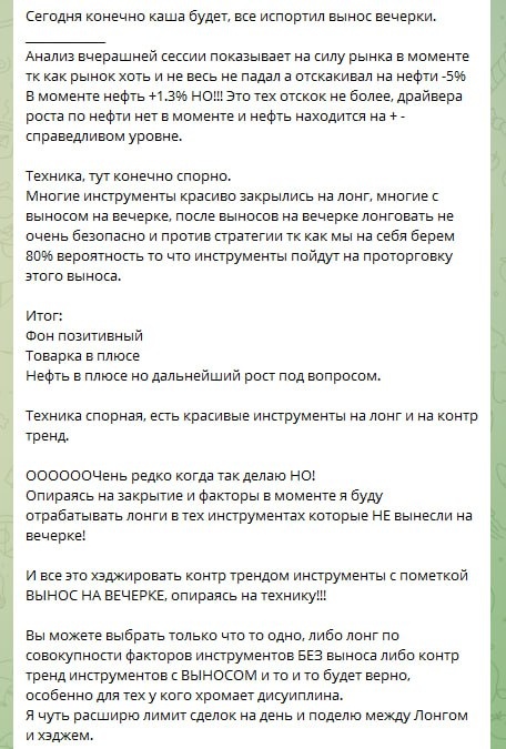 🆘В рамках обучения смотрим обзор. Это ежедневный обзор который выходит в закрытом ТГ канале ДО начала сессии. ❗️Объясню свою логику на сессию. Сегодня Однозначно каша. В рамках дня правильные оба сценария + Почему не жду рост нефти + скрин с планом из закрытого ТГ канала с факторами ____________ ❗️Как итог 4 стопа от шорта и 4 тэйка от лонга + досиживаю лонги, стопы в БУ тк как инструменты не пошли не смотря на рост по ММВБ на 80% ____________ ЮТУБ https://youtu.be/-YHCMYFwMBA РУТУБ https://rutube.ru/video/private/94ab469281b2f3d187c99863956d35fb/?p=_etuQq0EtXiexgjE0-tDEA ___________ 🆘СМОТРИ ОБЗОРЫ!!! Хочешь ежедневно получать такую информацию до начала ОС?? Присоединяйся!!! ТГ канал @LaktionovPrivat_bot - Подписка отбивается за одну сделку!
