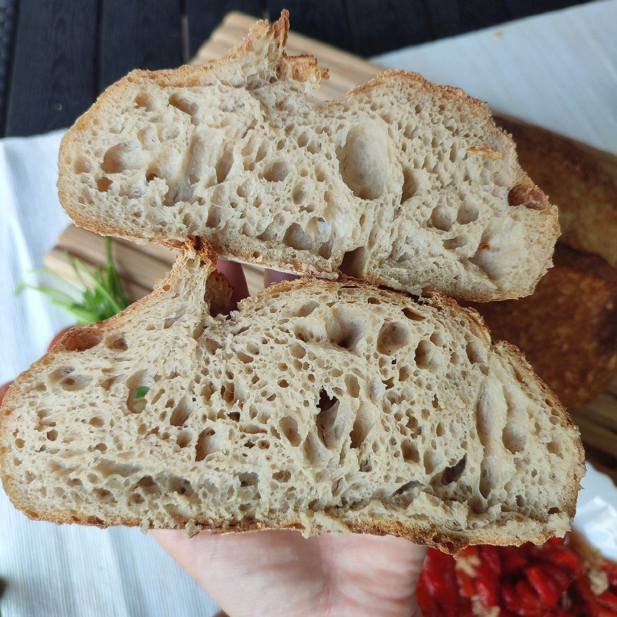 Вот такой "дикий" мякиш получился у моего цельнозернового.