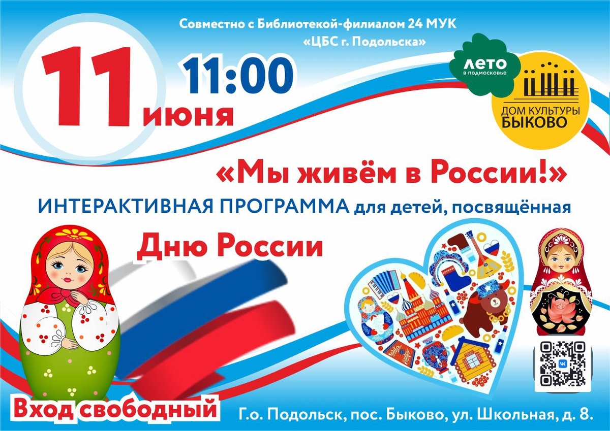✨ Самые интересные мероприятия в посёлке Быково в июне 🔥 11 июня в 11:00 Интерактивная программа "Мы живём в России" (3+) 💫 20 июня в 11:00 "Зов Джунглей" Игровая программа для детей (6+) 🎈26 июня в 20 00 КОНЦЕРТ посвященный Дню молодежи 🏢 Дом культуры «Быково» 📍 Московская обл., г. Подольск, п. Быково, ул. Школьная, д. 8 💰 Вход свободный❗️ ⭐Разместить публикацию ⭐Поддержать канал голосом ✅ Мероприятия Подольск https://dzen.ru/id/66ed500f7b5671493eca3fd6 http://vk.com/podolsk_events http://dzen.ru/podolsk_events