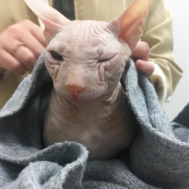 Сфинксы коты, которые, кажется, были собраны вручную: кожа будто замшевая, уши как тарелки, взгляд философски-снисходительный. Но эта красота не всегда практична. Один из "фирменных" косяков модели - заворот век