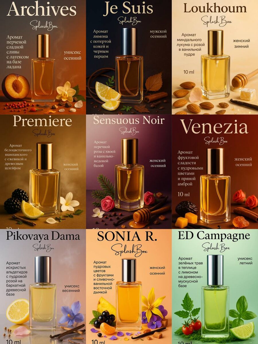 🌼🌼🌼🌼🌼🌼🌼🌼🌼 🌺🌺🌺🌺🌺🌺🌺 🌼🌼🌼🌼🌼🌼🌼🌼🌼 🌼 Ombre De Hyacinth - аромат первой весенней свежести с сиреневым гиацинтом на теплой смолистой базе 🌼Арт. 447416813 🌼 Miu - аромат мокрой травы и весенних цветов с персиком на чистой мускусной базе 🌼Арт. 447416823 🌼 La Capitale - аромат восточных специй с карамелью и фруктами на кожано-ванильной базе 🌼Арт. 447416821 🌼 Amariage Mariage - аромат кремовых белых цветов с цитрусами на ванильно-древесной базе 🌼Арт. 447416819 🌼 Eau De Campagne - аромат зеленых трав в теплице с лимоном на древесно-мускусной базе 🌼Арт. 447416810 🌼 Loukhoum - аромат миндального лукума с розой в ванильной пудре 🌼Арт. 447416812 🌼 Pikovaya Dama - аромат искристых альдегидов с пудровой розой на бархатной древесной базе 🌼Арт. 447416809 🌼 Rykiel - аромат пудровых цветов с фруктами и сливочно-ванильной восточной дымкой 🌼Арт. 447416818 🌼 Venezia - аромат фруктовой сладости с пудровыми цветами и пряной амброй 🌼Арт. 447416820 🌼 Sensuous N