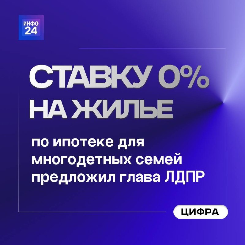 Слуцкий предложил обнулить ставку по семейной ипотеке для многодетных. Лидер ЛДПР Леонид Слуцкий направил премьер-министру Михаилу Мишустину предложение снизить ставки по семейной ипотеке в зависимости от количества детей. Для семей с одним ребенком он предлагает ставку в 6%, с двумя — снизить до 3%, а для многодетных (трое и более детей) — обнулить. Сейчас программа семейной ипотеки под 6% с первоначальным взносом от 20% остается малодоступной для многих, несмотря на льготы и маткапитал. По мнению Слуцкого, такая мера стимулирует рождаемость и улучшит жилищные условия семей. Он отметил, что число многодетных семей в России выросло с 2,4 до 2,65 млн, но этого недостаточно. Для долгосрочного эффекта нужно также развивать малоэтажное строительство с инфраструктурой. Это, по его словам, укрепит демографию и увеличит число русских семей. Подписывайтесь на Инфо24 | Прислать новость