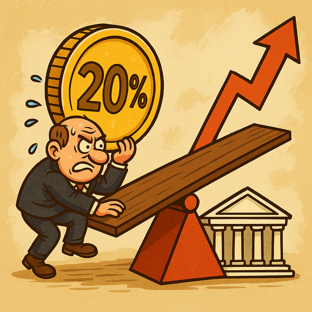 На июнь 2025 года ставка находится на уровне 20%, и это один из самых высоких уровней за последнее десятилетие. ЦБ жёстко борется с инфляцией, которая остаётся на уровне 7–8% в год, несмотря на сильный рубль и снижение импорта.