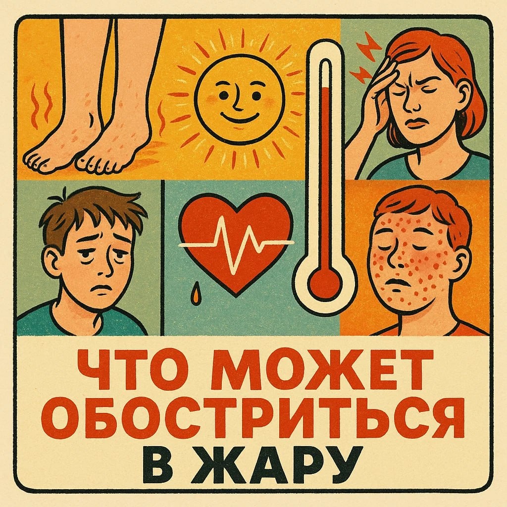 🌡 ЧТО МОЖЕТ ОБОСТРИТЬСЯ ВО ВРЕМЯ ЖАРЫ
