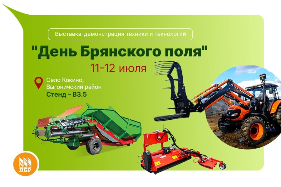 🗣 "День поля" под Брянском - масштабное событие лета! Это уникальный шанс: ⚡️увидеть вживую новейшую технику для картофеля, зерновых и овощных культур, химической защиты и др.; ⚡️потрогать руками и сравнить десятки сортов растений от лучших селекционеров; ⚡️перенять опыт – на демонстрационных полях покажут реальную работу агрегатов; ⚡️узнать о господдержке из первых уст – на "Дне поля" будут чиновники Минсельхоза; ⚡️закрыть все вопросы за день – соберутся поставщики, агрономы и другие специалисты отрасли из регионов России, ближнего и дальнего зарубежья. 🔥 Почему стоит приехать? Компания ЛБР – постоянный участник Брянского "Дня поля". В этот раз мы привезем 9 самых популярных агрегатов в регионе: ▶️ трактор FÄRMER FL1204 (Stage II) 120 л.с.; ▶️ садовый опрыскиватель ZEBRA ROBOTIC 1000; ▶️ садовую косилку-измельчитель со смещением HS 175 Сhopper; ▶️ предпосевной культиватор КНК-3; ▶️ бункер приемно-сортировочный ППС 20-60 и др. 📌 Стенд ЛБР – B3.5. Наши эксперты подробно п
