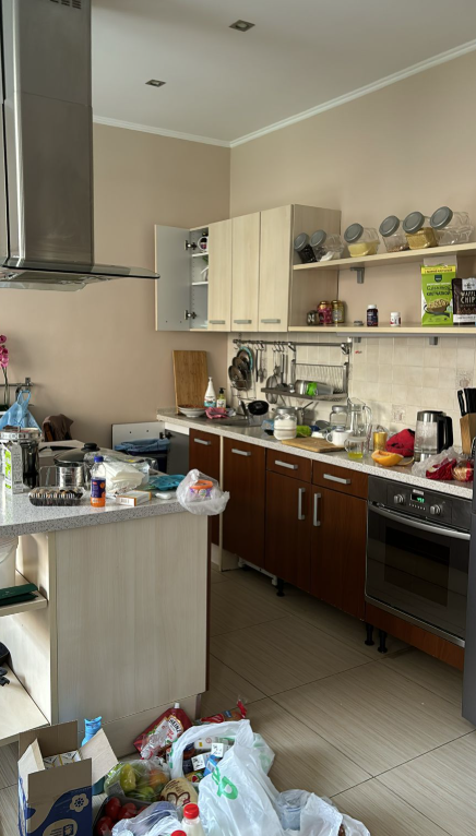 По технике тоже без вопросов: есть и микроволновка, и духовка, и вытяжка, и плита и посудомойка.