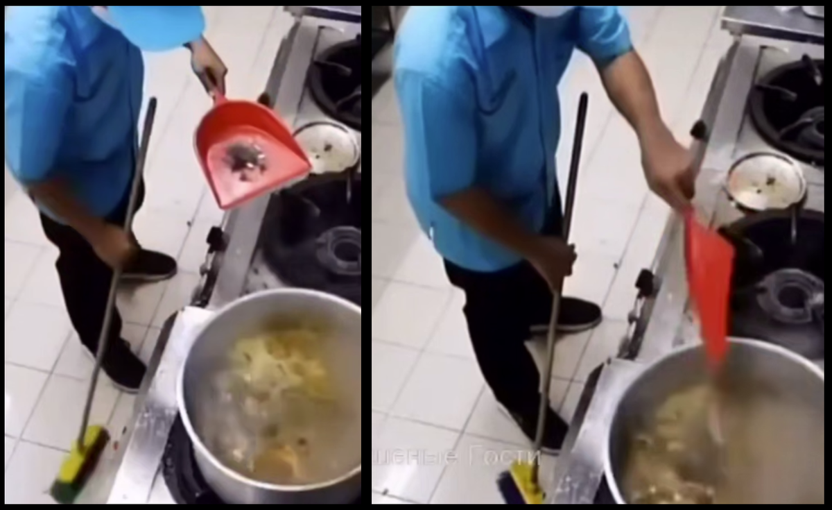 "Не переношу свинину": приезжий Мухаммад высыпал полный совок мусора в кипевший на плите суп в ресторане