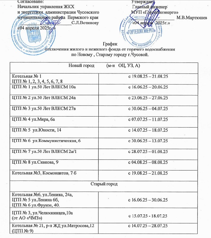 Уважаемые жители! Публикуем важную информацию об отключении горячего водоснабжения в летний период 2025 года. 📌 Отключение запланировано с целью проведения профилактических работ и подготовки системы к отопительному сезону. ❗️ Обратите внимание: горячая вода временно отсутствует именно в указанный промежуток времени! ⚠️ Если возникнут дополнительные вопросы — обращайтесь в диспетчерскую службу вашей управляющей организации. Приносим извинения за временные неудобства и благодарим вас за понимание! #жкх@glavachus