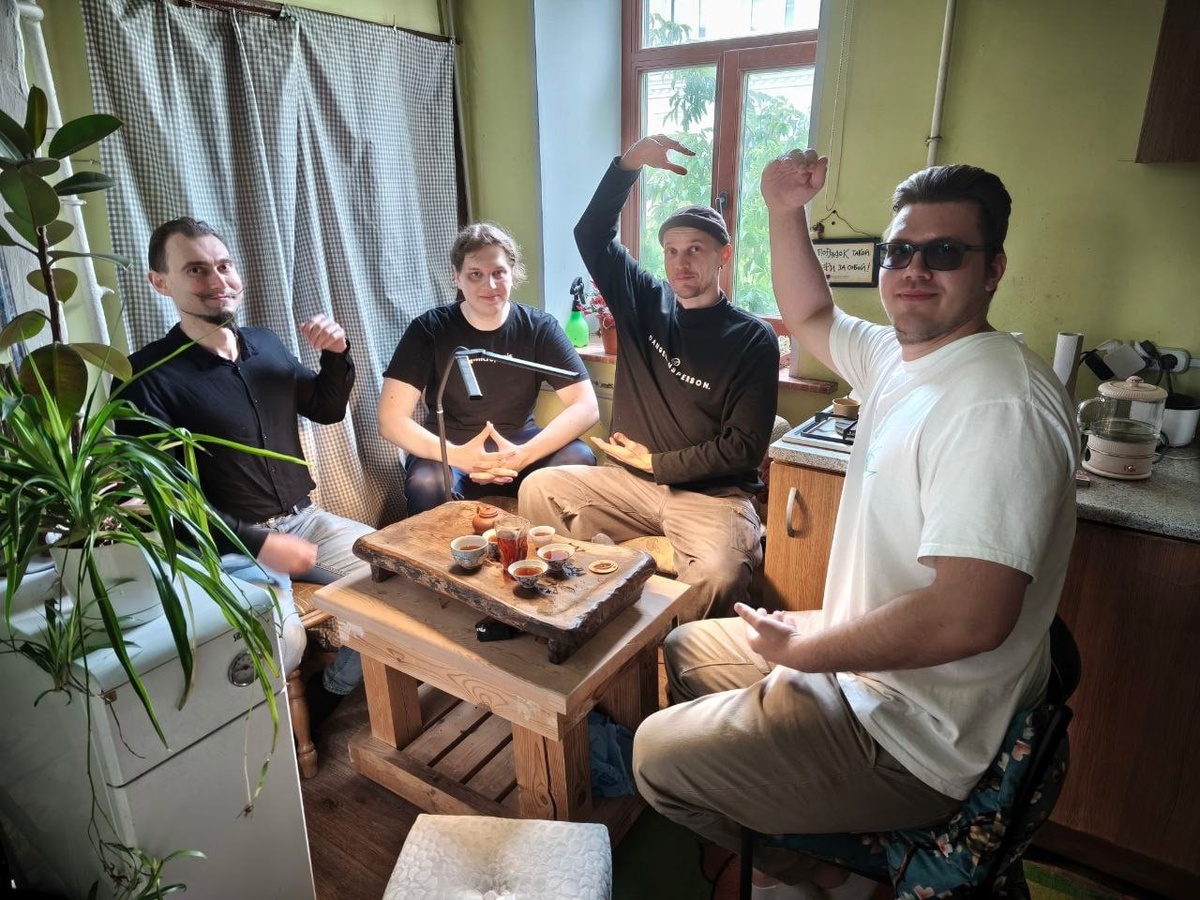 Зато попробовали пару секретных дорелизных чаев, а между нашим диким шэном и красной хейчей с золотой плесенью провели шахматный промо-матч