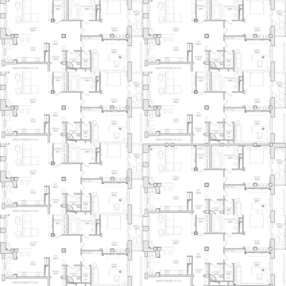 Самая большая квартира в продаже в Москве в 80 раз больше и в 204 раза дороже самой маленькой: «Самая большая квартира на вторичном рынке столицы площадью 1,1 тысячи квадратных метров продается на улице Минская на западе Москвы в доме 2019 года постройки. Цена продажи составляет 1,1 миллиарда рублей. Площадь же самой маленькой квартиры, которая продается на вторичном рынке Москвы, составляет всего 13,7 квадратных метров, площадь кухни - 3,7 квадратных метра. Она находится в доме на улице Гурьянова на юго-востоке города в девятиэтажке 1974 года постройки. Цена квартиры - 5,4 миллиона рублей» на представленном фото, чисто для прикола, приведен 8 раз план квартиры площадью 150 квадратов. Всего: 8 гостиных+8 кухонь, 8 холлов, 16 спален, 16 санузлов, 8 гардеробных и постирочных, 8 серверных и 8 лоджий. «Щукин и всё»