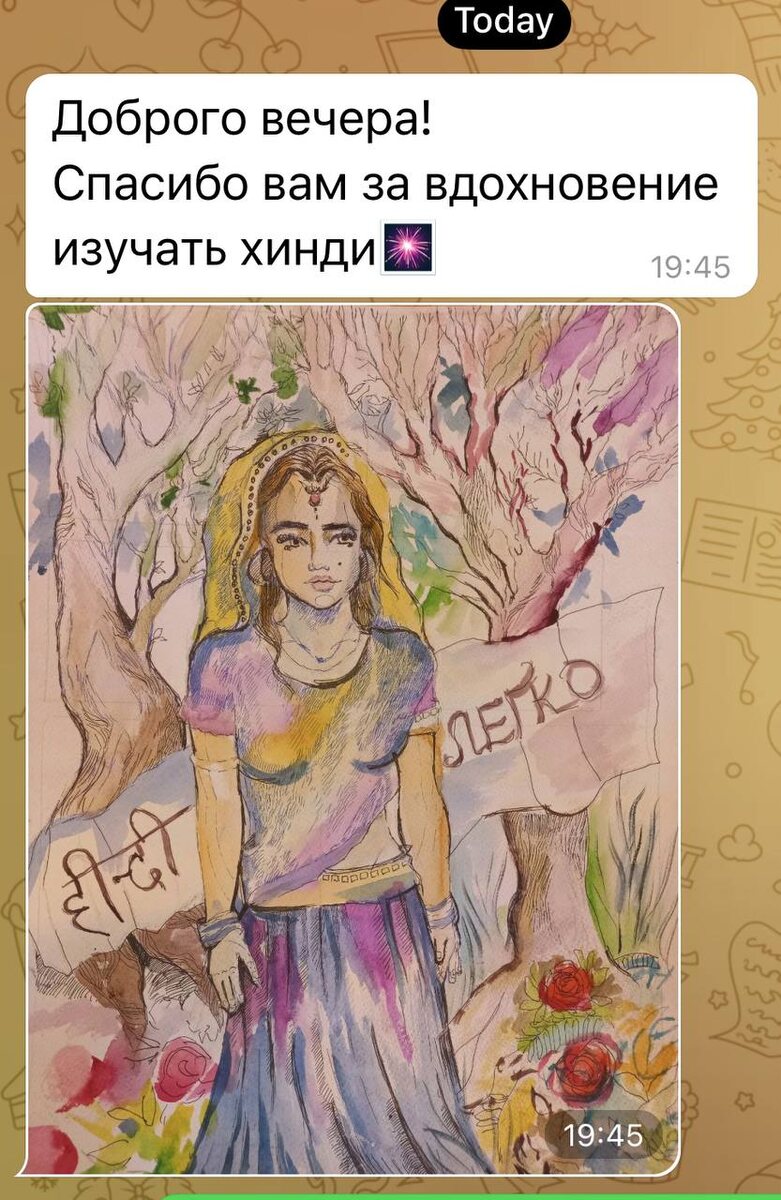 Так неожиданно и приятно получать ваши рисунки с любовью к хинди.