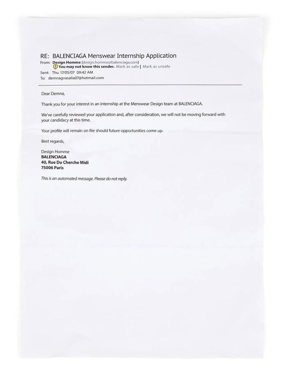 В 2007 году молодой дизайнер Демна Гвасалия получил письмо с отказом от Balenciaga, куда он подавал заявку на стажировку