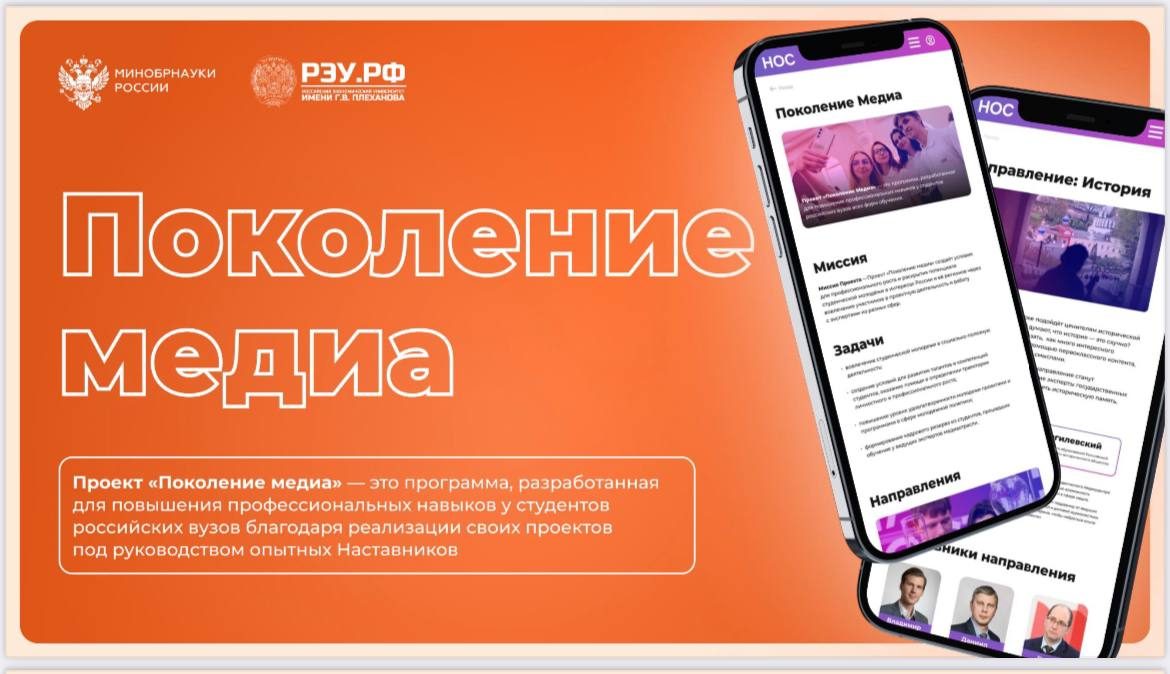 25 июня стартовал проект «Поколение медиа» — совместной образовательной инициативы Минобрнауки России и РЭУ им. Г.В. Плеханова, направленной на поддержку талантливых студентов, желающих развиваться в сфере медиа. К участию в проекте приглашаются студенты 18-35 лет всех форм обучения, прошедшие регистрацию на ресурсе «НОС: наука, образование, студенчество». Проект охватывает пять направлений: «Наука»; «Культура»; «Спорт»; «История»; «Управление в области медиакоммуникаций». 30 финалистов смогут создать собственные проекты под руководством опытных наставников, среди которых — представители Минобрнауки России, главные редакторы СМИ, руководители пресс-служб, олимпийские чемпионы, кинопродюсеры и эксперты в области коммуникаций. В числе наставников проекта - журналист, продюсер, сценарист, директор АНО «Нестеренко центр» Кристина Никитина. Заявки принимаются до 20 июля 2025 года.