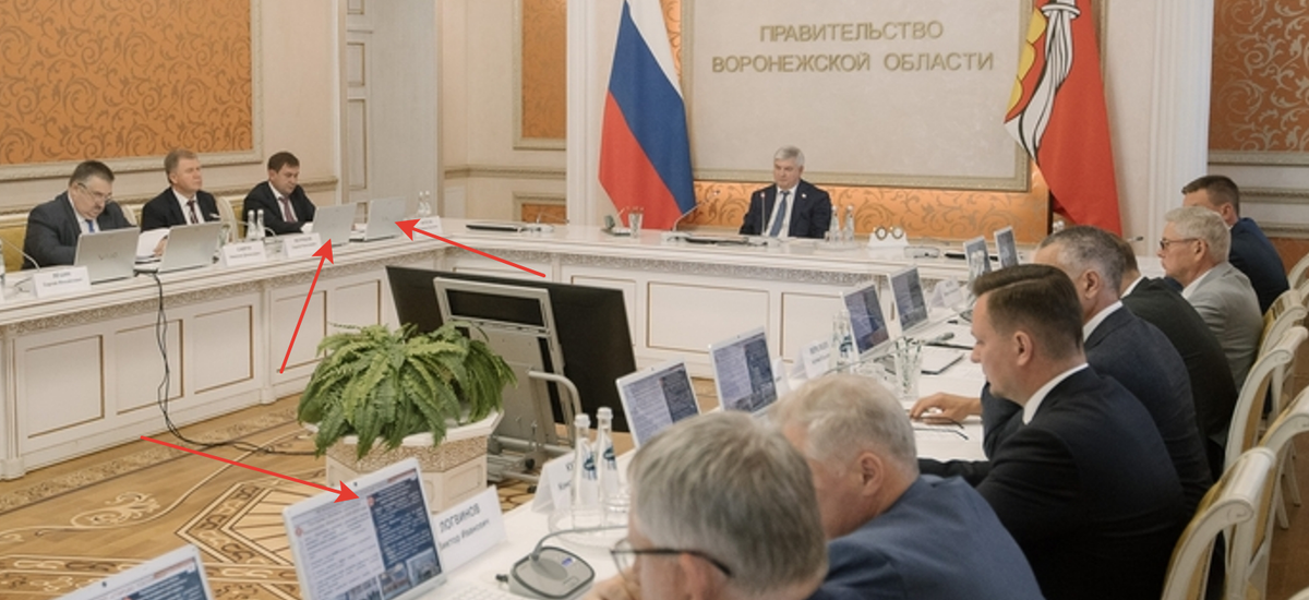 Ни один, а сразу два ноутбука предоставляются Владимиру Нетесову во время его присутствия на традиционных совещаниях с губернатором, которые проходят по понедельникам в здании регионального правительства. Последнее мероприятие не стало исключением: перед председателем Воронежской облдумы были установлены сразу два работающих ноутбука и спикер, вероятно, работал с удвоенной энергией, считывал информацию и рассматривал картинки сразу с двух экранов. При этом в зале облправительства, где проводилось совещание, были замечены «пострадавшие»: на двух вице-премьеров – Виктора Логвинова и Олега Мосолова, – судя по всему, пришелся только один ноутбук и чиновники, слегка прижавшись друг к другу, как советские школьники, которым в классах порой выдавался один учебник на двоих, читали информацию с экрана одного ноутбука. фото сайта облправительства, перед Нетесовым два ноутбука, а у вице-премьеров Логвинова и Мосолова - только один на двоих Главный федеральный инспектор по Воронежской области Серг