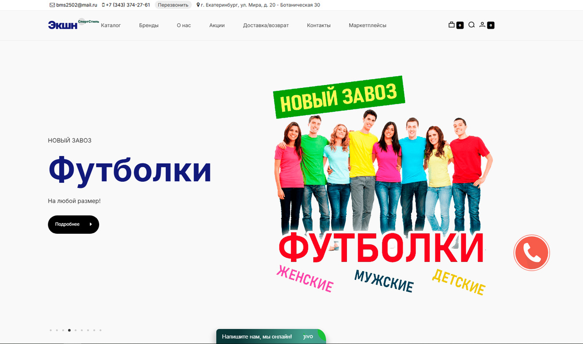 Разработка сайта интернет магазина для Экшн Спорт Стиль в Екатеринбурге.