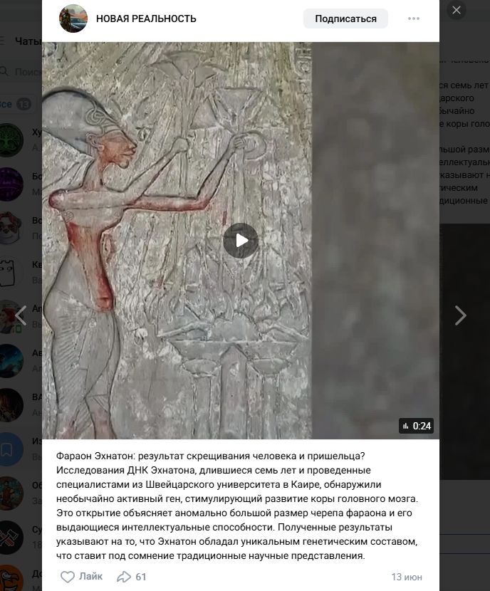 Пару дней назад наткнулся на совершенно сенсационную новость: оказывается, учёные проанализировали ДНК фараона Эхнатона и поняли - он гибрид человека и инопланетян! Звучит мощно, не правда ли?