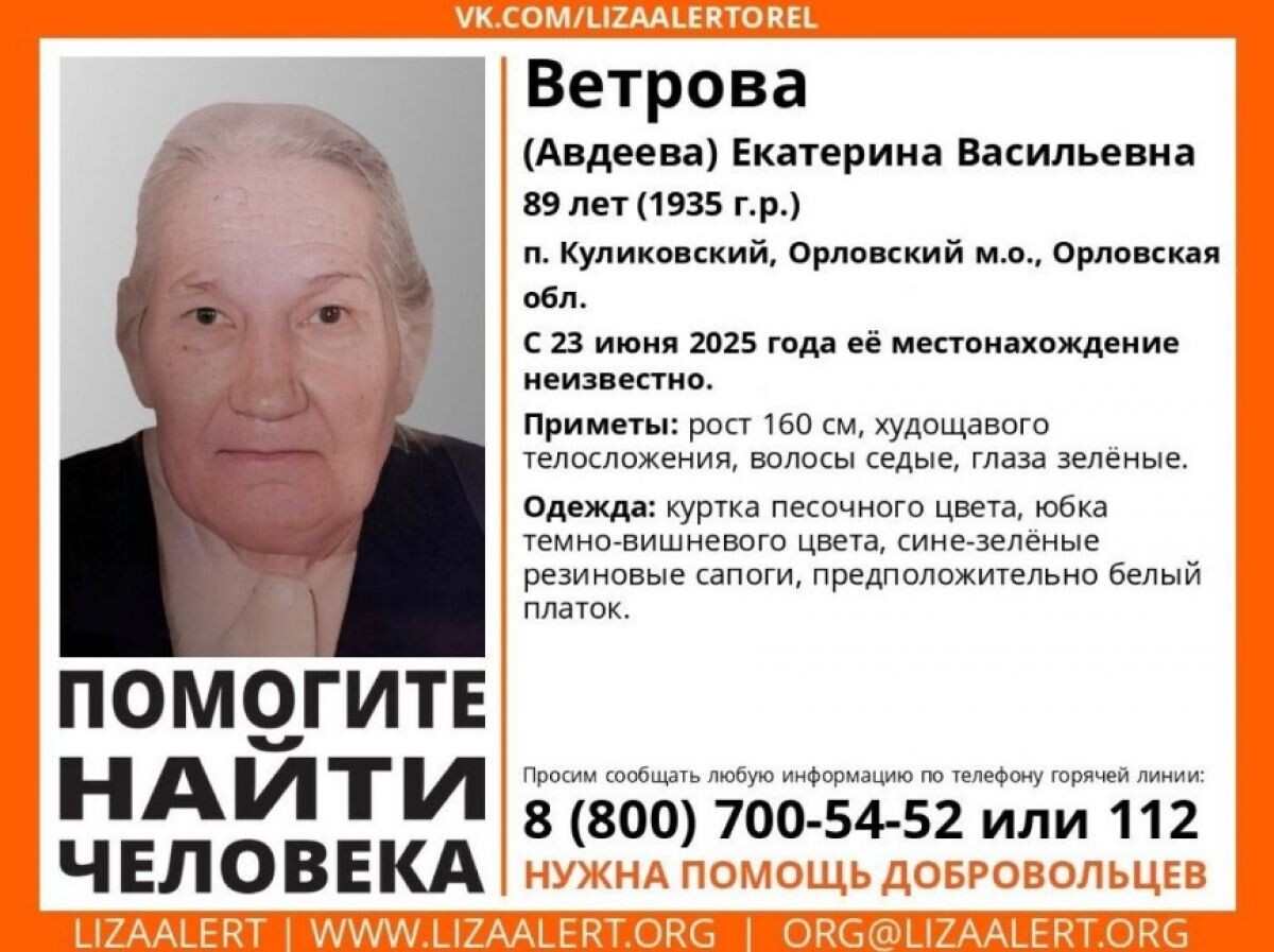 Жителей Орловской области попросили проверить записи с видеорегистраторов. О помощи жителей региона попросили поисковики «ЛизаАлерт». Тех водителей, кто двигался 24 июня с 07:00 до 10:00 в районе въезда в Орел с Ливенской стороны, а также от съезда на Залегощь до съезда в Лужки попросили предоставить записи с автомобильных видеорегистраторов. «Водители, пожалуйста, посмотрите свои записи и прикреплённую к посту ориентировку — возможно, на ваши камеры попала пропавшая и именно благодаря вам мы сможем найти Екатерину Васильевну!» - обратились к орловцам поисковики. Помимо этого, волонтеры попросили владельцев частных камер, расположенных в указанном районе, связаться с ними. Напомним, в Орловском МО с начала недели не могут найти пропавшую 89-летнюю Екатерину Ветрову.