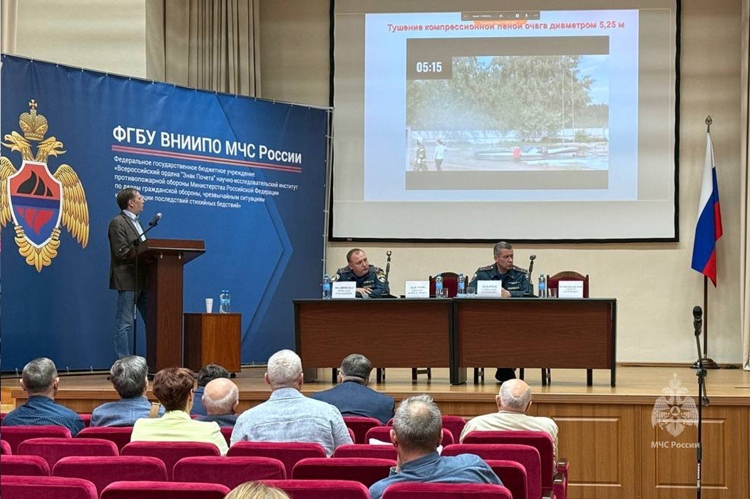 25 июня 2025 года в ФГБУ ВНИИПО МЧС России в рамках деятельности рабочей группы по совершенствованию положений СП 155.13130.2014 «Склады нефти и нефтепродуктов. Требования пожарной безопасности» состоялся научно-практический семинар на тему: «Практические вопросы применения установок пожаротушения с генерированием пены компрессионным способом». Мероприятие объединило ведущих экспертов в области пожарной безопасности для обсуждения перспективной технологии – пожаротушения с использованием компрессионной пены. Участники представили актуальные доклады и обменялись опытом по внедрению инновационных решений. С приветственным словом выступил Вячеслав Маличенко, заместитель начальника отдела нормативно-технического Департамента надзорной деятельности и профилактической работы МЧС России. В ходе дискуссий участники обсудили достоинства и недостатки пены, генерируемой компрессионным способом, ее принципиальные отличительные особенности по сравнению с традиционным пенным пожаротушением. Обсужда