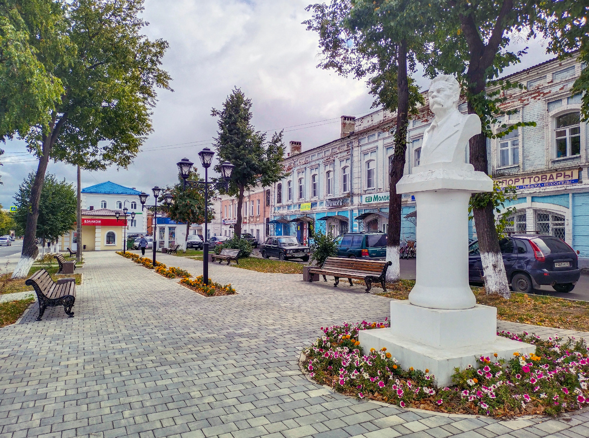 Одна из центральных улиц – Советская. Здесь в небольшом литературном сквере установлены памятники Пушкину и Горькому, а в рамках недавнего благоустройства появилась ещё и жанровая скульптура «Родители». Кстати, проект благоустройства сквера стал победителем народного голосования (699 голосов). Комплексное решение включало реконструкцию бюстов писателей, установку скамей и урн, монтаж системы освещения, а также укладку асфальта вокруг сквера. Пешеходная зона вымощена тротуарной плитой Старый Город высотой 60 мм в двух оттенках – Colormix Актау и Colormix Тахель. Приятная палитра естественно вписалась в атмосферу тихого провинциального города, а оригинальная структура поверхности мощёного полотна хорошо сочетается с дореволюционной архитектурой.