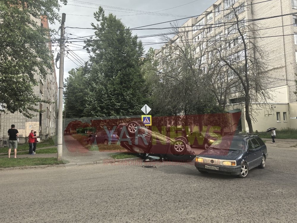 По предварительным данным, обошлось без пострадавших. Об инциденте в Ленинском районе Ярославля корреспонденту ЯрНьюс сообщили очевидцы. Они прислали в редакцию фотографии, а также видео с места происшествия. На кадрах видно, что чёрный седан «припарковался» аккурат у пешеходного перехода на пересечении улиц Белинского и Карла Либкнехта. У машины помят левый бок. Очевидно, есть проблемы с лобовым стеклом и капотом, однако точно оценить их в таком положении не выйдет. На кадрах дверь у машины открыта. Вероятнее всего, водитель смог покинуть авто самостоятельно. При этом на месте ДТП была замечена карета «Медицины катастроф». Второй участник ДТП — синий хэтбчек, стоит поодаль, у дерева. У него серьёзно смят капот. Как пояснили в пресс-службе УМВД России по Ярославской области, в 16:20 на этом месте «Лексус» столкнулся с «Фольксвагеном». Первая иномарка в итоге перевернулась. А вот пострадавших в ДТП, по предварительной информации, нет. Вероятно, помощь медиков участник столкновения не по