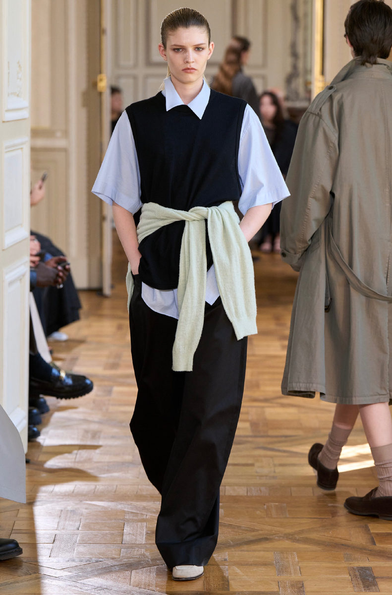 Приветствую Вас, стильные леди! Модные тенденции, стилистические фишки на 2026 год уже начинают появляться согласно выпущенным коллекциям модных домов. Могу выделить стилизацию, которая есть во всех коллекциях (мужских и женских) - это подвязать трикотажное изделие на бедра или талию! Это не новшество, но именно такой прием использовали почти все дизайнеры в 2026 году. Берём на заметку!👌✨ При этом можно усложнить такой прием, как сделал Hermes, добавив платок! Как Вам?! Увидимся на канале! Еще больше модных идей у меня в ТГ-канале, всем рада!👌✨