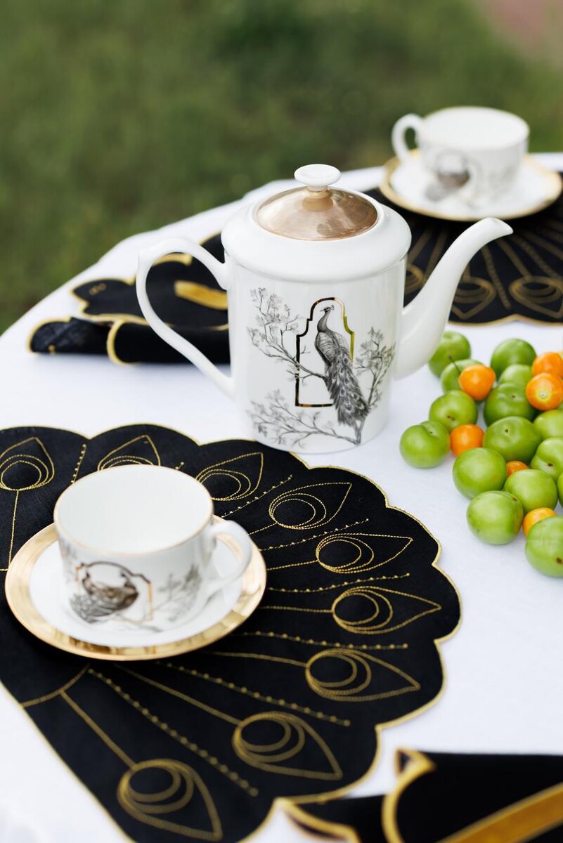Центральной темой стал стиль, вдохновленный павлинами. Еще в царской России для содержания диковинных птиц Шереметевы возвели парковый вольер, который сохранился в Кусково по сей день. Петр Аксенов, идейный вдохновитель «Русской сказки», представил новую коллекцию, посвященную павлинам. На мероприятии презентовали сервиз «Небесные птицы», созданный в коллаборации с фабрикой «Гжель». А дом текстиля MOMO дополнил сервировку уникальными изделиями с золотой вышивкой в виде павлиньего хвоста. Любуемся снимками и не можем оторвать глаз!