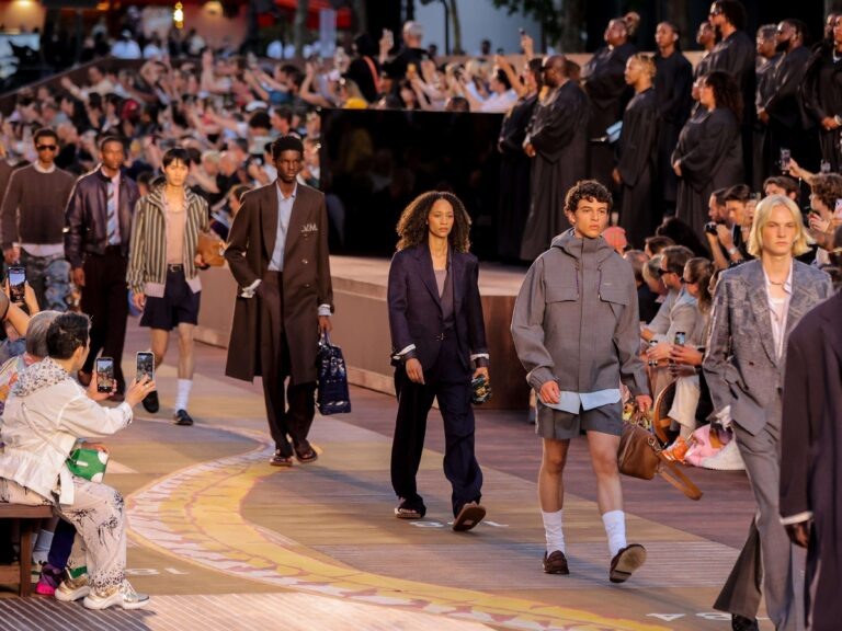 Кто сказал, что мода — это скучно? 🤔 Редакция сайта cheek-look.ru в восторге от того, как Louis Vuitton превратил показ в азартное приключение! Гигантская игра «Змеи и лестницы», специи вместо палитры и слоны на сумках — это не просто коллекция, а настоящий культурный квест. 🎨 Фаррелл Уильямс и его команда не стали копировать сари или тюрбаны. Вместо этого они вдохнули в коллекцию дух Индии через оттенки куркумы, индиго и корицы. Ткани? Насыщенные, как аромат чая масала. Детали? Филигранные, словно узоры на старинном текстиле. А эти принты! Гепарды, зебры, слоны — будто герои «Поезда на Дарджилинг» Уэса Андерсона сбежали на одежду. И да, Speedy-сумки с анималистичными мотивами — must-have сезона. 🐸 Лягушка — новый талисман LV? Почему бы и нет! Этот милый акцент отсылает к саду архитектора Биджоя Джейна, создавшего пространство показа. А вот крикет — неожиданно, но стильно. V-образные свитеры, клубные галстуки… Фаррелл доказал: даже спорт может быть гламурным. И куда же без семьи? Ег