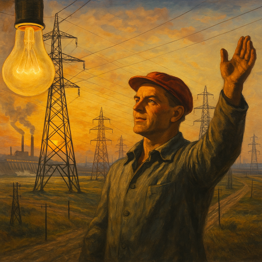 Когда электричество стало делом народным Сегодня включил свет — и даже не заметил. А ведь когда-то в этом был целый праздник. В прямом смысле: собирались соседи, включали лампочку, и начинались аплодисменты. Потому что электричество — это не просто свет. Это цивилизация. Это будущее. В СССР это понимали как никто. Поэтому сразу после революции был принят грандиозный по тем временам план: осветить всю страну. В 1920 году, когда деревни ещё жили по керосинке, а города периодически погружались во тьму, Ленин запускает План ГОЭЛРО — Государственный план электрификации России. Суть проста: построить электростанции по всей стране, связать их в единую сеть и сделать так, чтобы свет был в каждом уголке. Для понимания масштаба: 🔌 до революции на 1 жителя приходилось менее 2 кВт⋅ч в год. 🔌 в 1940 году — уже 130 кВт⋅ч, 🔌 а к 1980-м — более 3000 кВт⋅ч на душу населения! Строили всем народом. Бетон таскали на себе, провода натягивали вручную. На стройках работали студенты, комсомольцы, бы