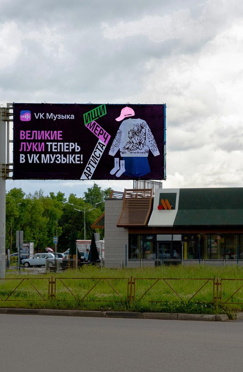 VK Музыка запустила рекламу в Великих Луках к запуску раздела с мерчом артистов прямо в карточке музыкантов