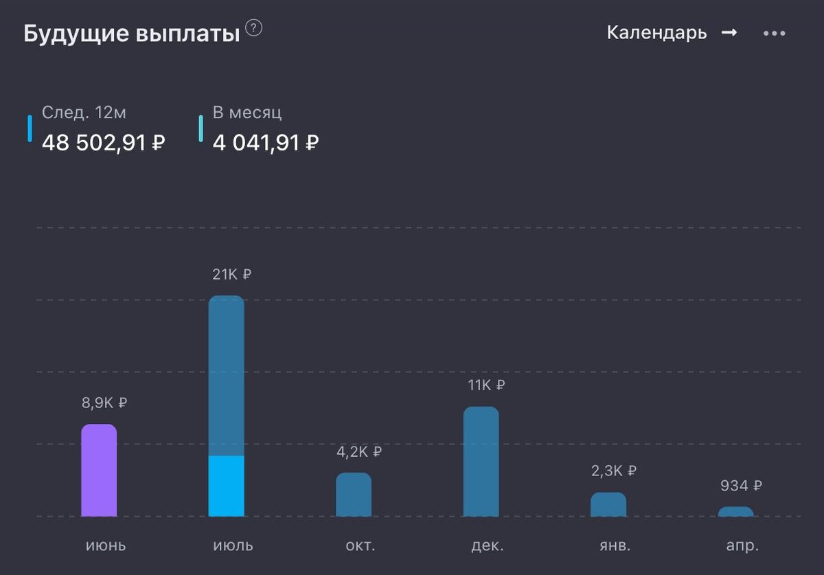 Самая главная цифра портфеля: за следующие 12 месяцев дивидендами ожидается 48 502 рубля уже после вычета налогов (+ 685 рублей к прошлому отчету).