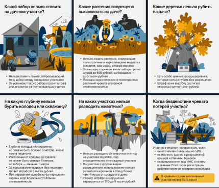 РИА Новости собрали подборку неочевидных запретах и последствиях для владельцев дачных участков. Некоторые моменты удивили, например про забор. Делюсь с вами.