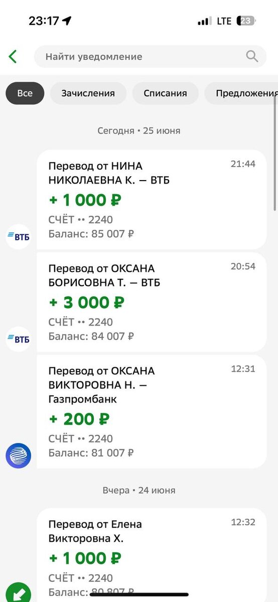 ОТЧЕТ О ПЕРЕВОДАХ ЗА 25.06.2025 г. 💥 Оксана Викторовна Н + 200 р 💥 Оксана Борисовна Т + 3000 р 💥 Нина Николаевна К + 1000 р СПАСИБО ОГРОМНОЕ ЛУЧШИЕ ЛЮДИ СТРАНЫ❤️ Вы помогаете нашим Героям, чтобы им немного полегче было выполнять БЗ. Спасибо большое всем , кто всегда рядом🙏