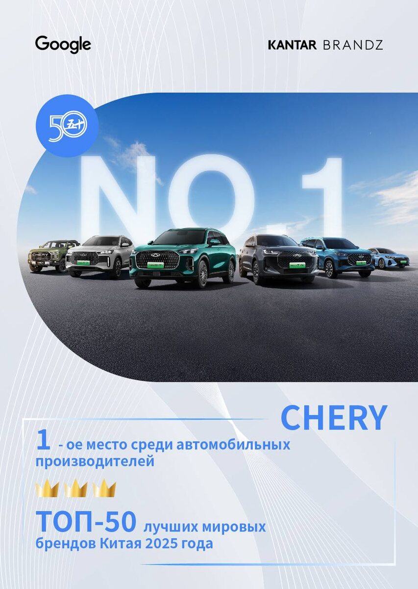 ⛰️ Три года на вершине – CHERY снова признан лучшим автомобильным брендом Китая Согласно новому рейтингу Google и Kantar «Топ-50 мировых китайских брендов 2025 года», CHERY третий год подряд занимает 1-е место среди автопроизводителей. 🏆 В общем зачете мы тоже прибавили – теперь 12-е место, а сила бренда выросла почти на 30%. Исследование оценивает значимость, узнаваемость и уникальность. Из более чем 400 брендов в шорт-лист вошли только 203 – и CHERY уверенно среди лидеров. Похоже, нам пора заводить отдельную полку для наград ;)