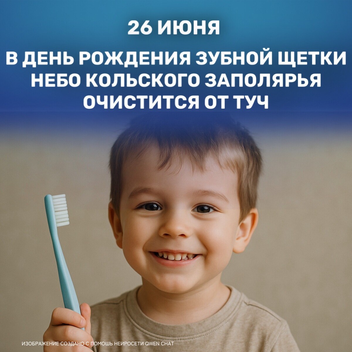 ⛅️ В Мурманской области в День рождения зубной щетки и День прощения ожидается облачная с прояснениями погода без существенных осадков Ветер северо-восточный умеренный. Температура воздуха ночью +2…+7 градусов Цельсия, днем +8…+15. 🪥 26 июня считается Днем рождения зубной щетки. Именно в этот день в 1780 году было запущено первое промышленное производство зубных щеток. Сегодня сложно представить свою жизнь без них, но были времена,когда люди использовали для ухода за зубами ветки деревьев, волокна растений и даже кусочки ткани. 🙏 Каждый год 26 июня также отмечают День прощения,который напоминает нам о том, насколько важны мир и согласие между людьми. Праздник служит своеобразным призывом отпустить обиды и стать немного добрее, терпимее и внимательнее к окружающим.