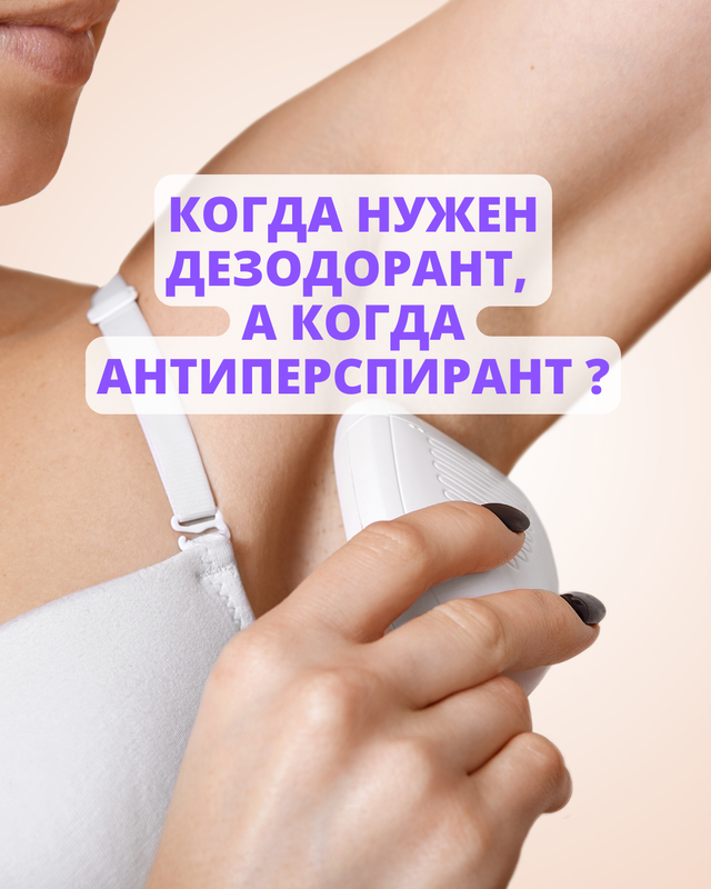 Дезодоранты: за счёт высокой концентрации ароматических веществ маскируют/скрывают запах пота. Потеем мы, когда работаем, двигаемся и пр, то есть днём. Поэтому и защищать себя (и посторонних) от неприятного запаха пота будет логично также днём. А точнее утром после сна и душа - наносим дезодорант на вымытую и сухую кожу подмышек. Внимание: дезодоранты не влияют на потоотделение! Антиперспиранты: за счёт содержания солей алюминия, сужают выводные протоки потовых желёз, откладываясь на их “стеночках”, в результате чего пот постепенно начинает выделяться в меньшем количестве. Таким образом вы потеете в местах их нанесения меньше. Внимание: чтобы антиперспирант действительно работал? соли алюминия должны попасть и остаться в этих выводных протоках, то есть нужен покой, без активности. Вот почему антиперспиранты наносят вечером перед сном после душа на вымытую и сухую кожу подмышек! Могут ли соли алюминия вызвать онкологию? Это мнение не имеет подтверждённых данных. Соли алюминия в антипер