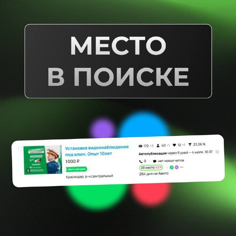 Как узнать место в поиске? Привет, коллеги. Сегодня хочу обсудить с вами новую аналитику от Авито, которая отображает ваши позиции в выдаче. Функционал, как обычно, раскатили тестово на небольшое кол-во пользователей. С одной стороны - это то, что мы так долго ждали. С другой - пока ещё сыровато) Давайте разберемся, как все устроено. По заявлению Авито данные показывают объективную позицию в выдаче, в отличие от наших личных наблюдений. Поиск учитывает интересы людей, в том числе ваши, и предлагает самые подходящие предложения, а среднее место показывает объективную позицию. Например, у вас в поиске объявление может быть 10-м, а у другого по тому же запросу — 20-м. Тогда в среднем оно занимает 15-е место. Важно! На показатель не влияет позиция в рекомендациях или на карте — только в поиске. Можно узнать среднее место за вчерашний день, 7 или 30 дней. Что ещё можно узнать на странице со статистикой поиска: • Поисковые запросы • Динамика среднего места • Сколько человек искало