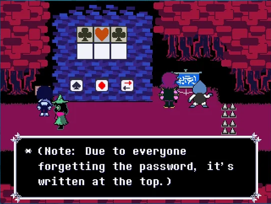 Коды в играх представляют собой цифровую или буквенную комбинацию, которую нужно ввести, чтобы открыть замок. Часто это буквально кодовый замок, куда вводятся цифры, но механика может быть реализована в виде любого запирающего механизма. Например, им может стать персонаж, которому нужно сказать пароль, чтобы зайти в бар.