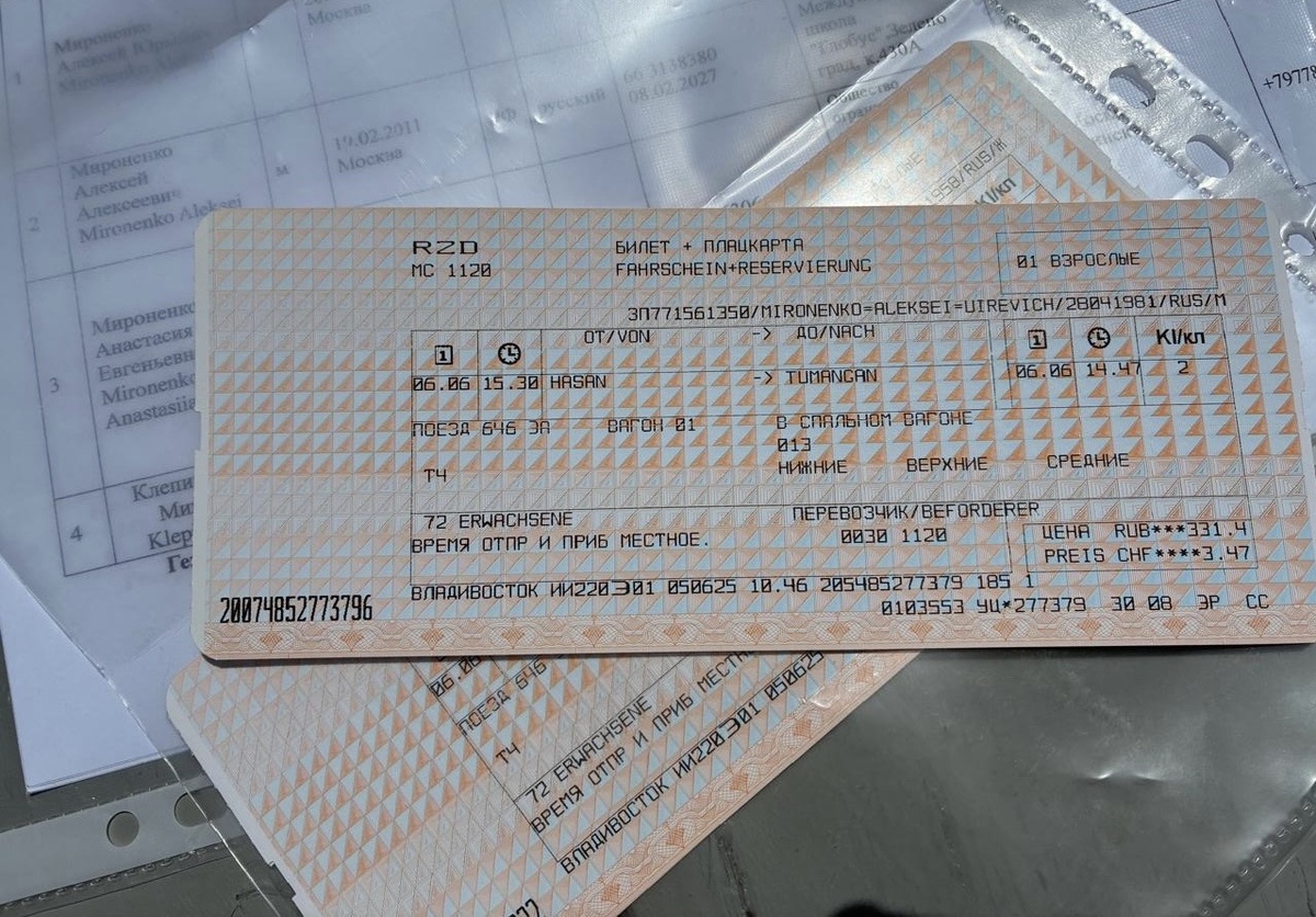 На вокзале и из поезда при движении просили не снимать. Все же из окна мы чуть поснимали надпись КНДР Россия. В поезде нам раздали бумажки, где необходимо написать стандартные данные и указать вашу модель мобильного телефона и его цвет.