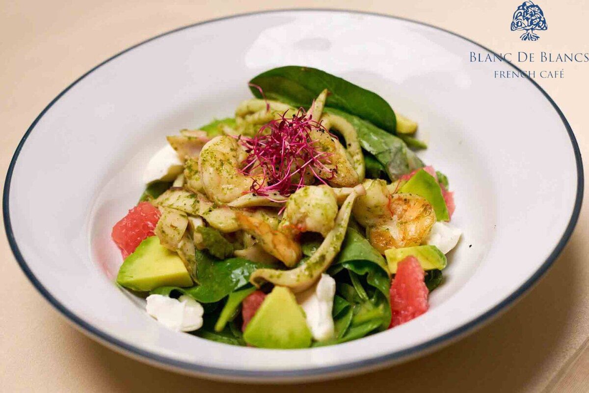 Древние истоки ⚓ Салат с морепродуктами — блюдо с богатой историей, уходящей корнями в античные времена. В Древней Греции дары моря считались деликатесом, доступным лишь знати и состоятельным гражданам. В Средневековье, с развитием торговых путей, морепродукты стали появляться на столах у разных слоёв населения, и из них начали готовить первые прообразы салатов — смеси из рыбы, моллюсков и простых приправ. Расцвет в эпоху Возрождения В Европе эпохи Возрождения салат с морепродуктами стал изысканным украшением праздничного стола. Итальянские кулинары создали классическую версию — "инсалата ди маре", в которой маринованные морепродукты сочетались с лимонным соком, оливковым маслом, петрушкой и ароматными специями. Это блюдо быстро завоевало популярность и стало символом средиземноморской кухни. Современная версия удивляет новыми гармониями вкусов: 🌞 Заправка: яркий апельсиновый соус с цитрусовыми нотами Блюдо на все времена От античных пиров до современных ресторанов — салат с морепроду